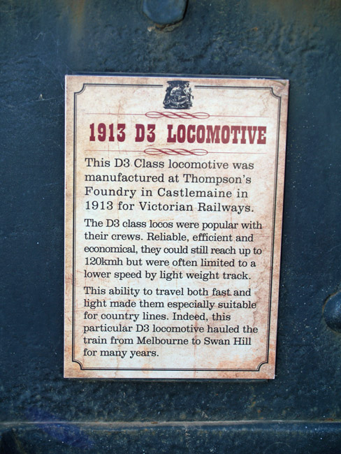 This plaque attached to D3 640 provides some history for the D3 class locomotives.