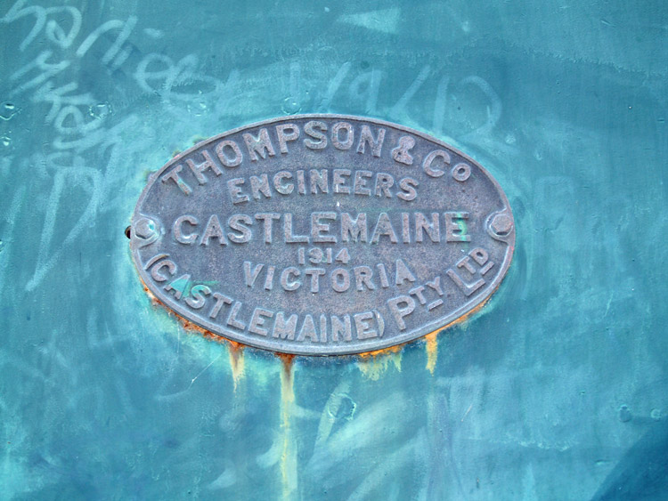 This locomotive was constructed by Thompsons Foundry, Castlemaine as their first locomotive, builder's number 1 of 1914. It was originally numbered DD 633 by the Victorian Railways, being one of the 261 members of the DD-class. It was renumbered D1 633 in 1923 before being rebuilt with the superheated D3 boiler in 1930, becoming D3 688. It was renumbered to D3 640 in 1963. (For more information about the Victorian Railways DD-class locomotives, refer to the entry for D2 604.) D3 640 is displayed within the grounds of the excellent Swan Hill Pioneer Settlement, which showcases the social and technical history of the area and is well supported by local community volunteers. I understand this locomotive carried the plates of D3 688 when originally preserved at Swan Hill but in the 1970's was returned to the number D3 640 by a group of rail enthusiasts. (Understandably the number changes for the Swan Hill locomotive D3 688 / 640 have caused some confusion regarding the other D3 688, which is stored at Ballarat East.) D3 640 appears to be well cared for at Swan Hill and I understand it has received cosmetic repainting and restoration by museum volunteers on a number of occasions. Most of the photos on this page date from a most enjoyable family visit to the Swan Hill Pioneer Settlement on 24 April 2014. |